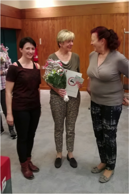 Für ihre unglaubliche, schon 60-jährige Mitgliedschaft (!) bedankte sich die OSC-Präsidentin Jana Hänsel bei der – gerade noch rechtzeitig eingetroffenen – Christel Marschall.